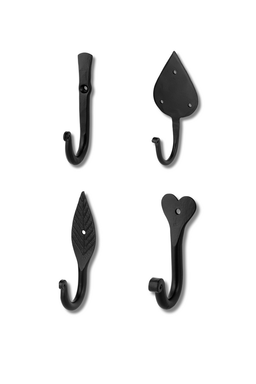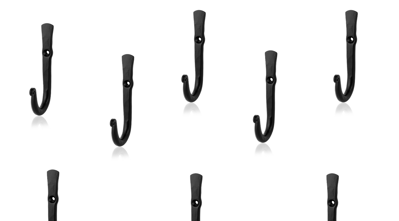 I really love these black rustic hooks that look great on my oak cottage roof beams. Wonderful design and only require one screw. Well pleased.